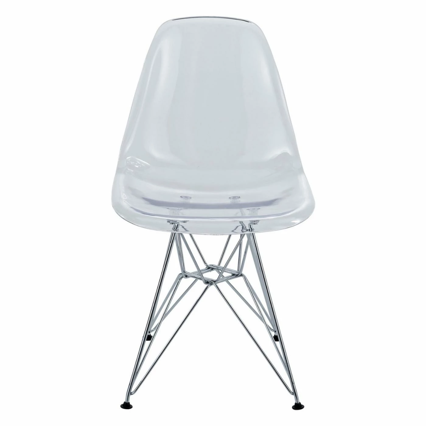 As delicate and iconic as the Eiffel tower itself, the sleek modern look of the Modway Eiffel Dining Side Chair – Clear will have everyone rushing to get a look. The durable and unique wire legs support the clear polycarbonate seat, providing comfort and unobtrusive beauty. Non-marking feet protect floors, while the lightweight design can go anywhere. Assembly required.