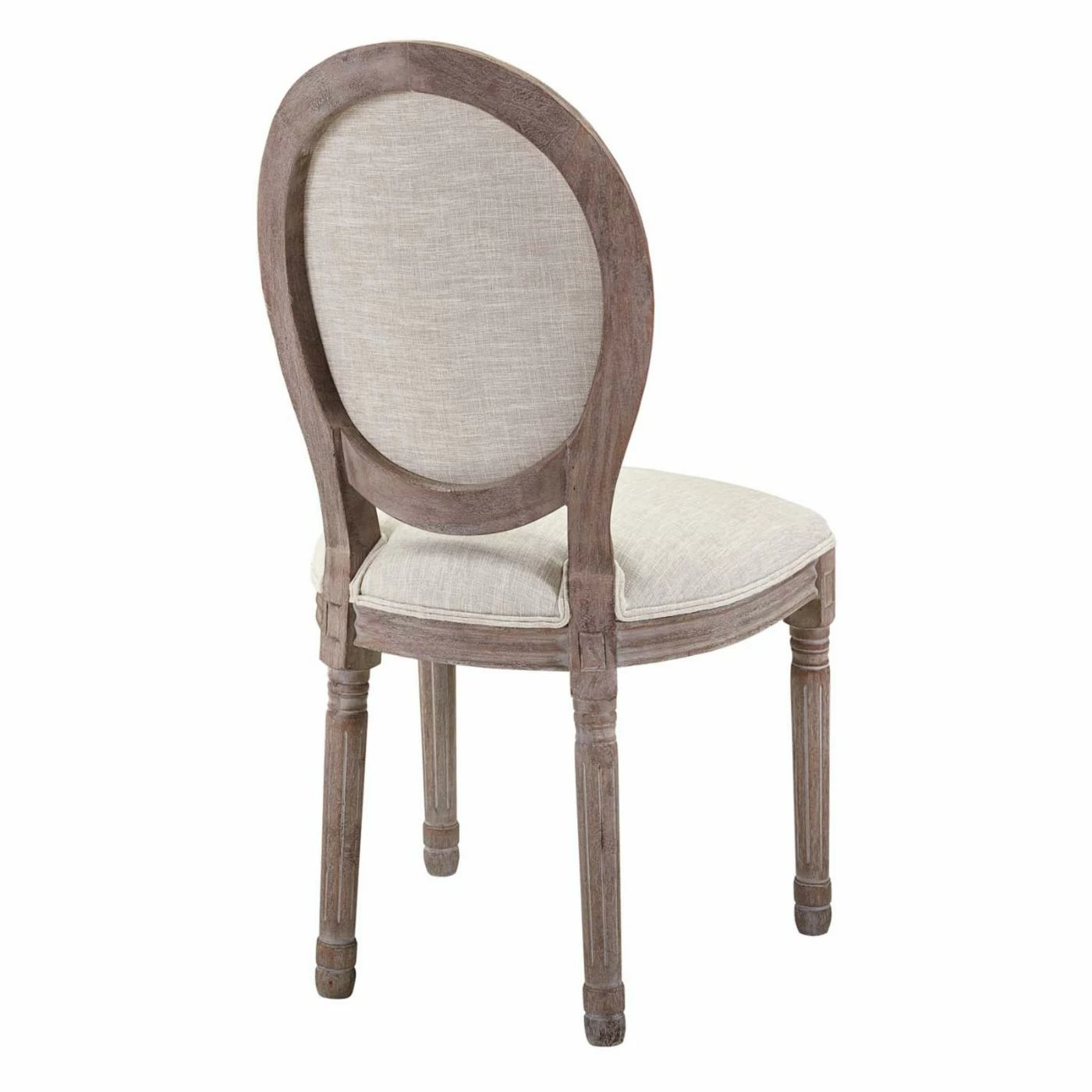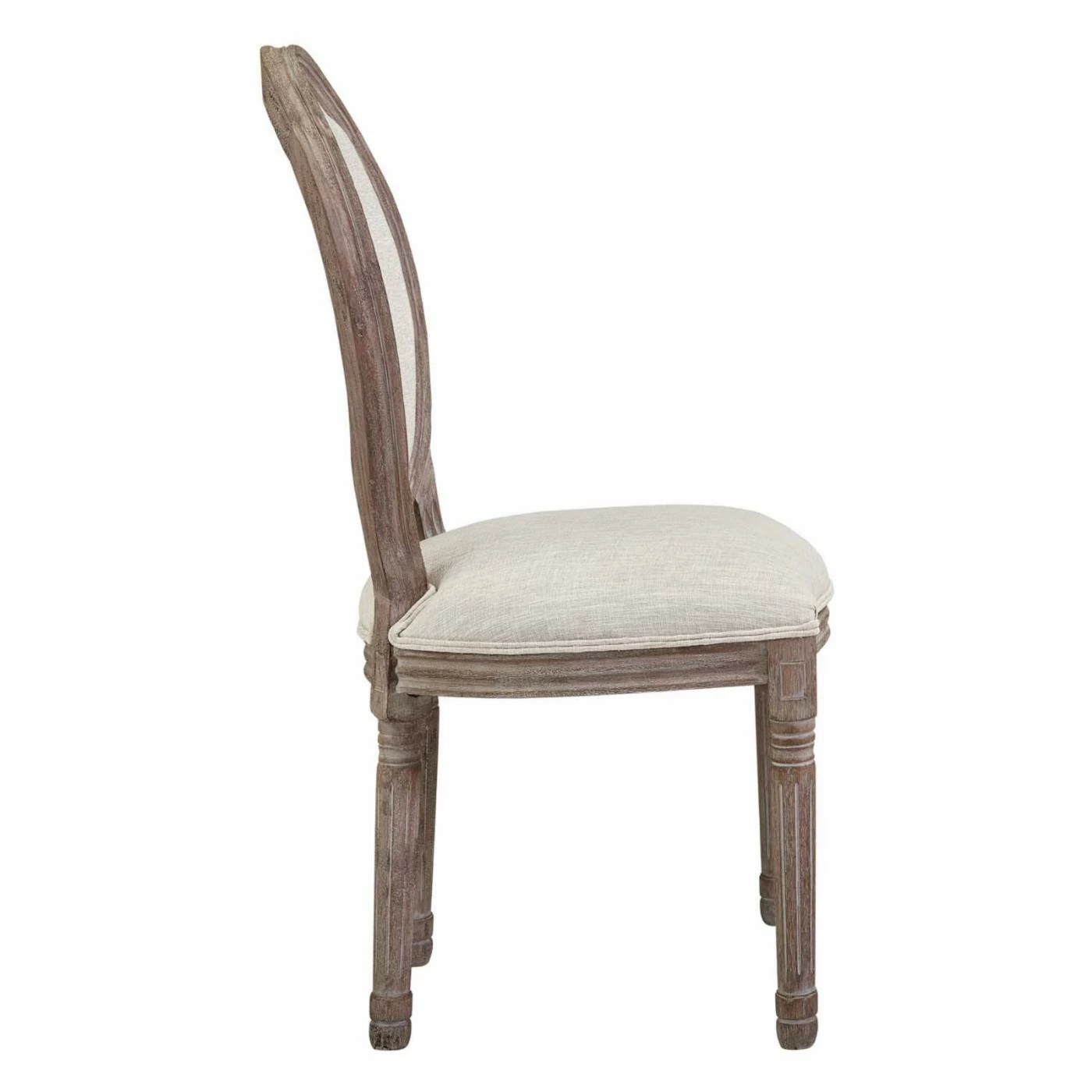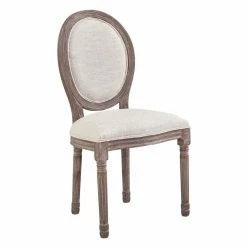 Keep your dining room style simple but elegant with the Modway Emanate Vintage French Upholstered Fabric Dining Side Chair. Its design is inspired by the styles of Louis the XVI and adds French country charm to your home. Its rubberwood frame features a weathered finish and is handsomely accented by the welted polyester upholstery. Dense foam padding makes this chair as comfortable as it is chic, while the floor pads ensure your floors arenβt scratched or snagged. Select from available colors to find the perfect match for your home.