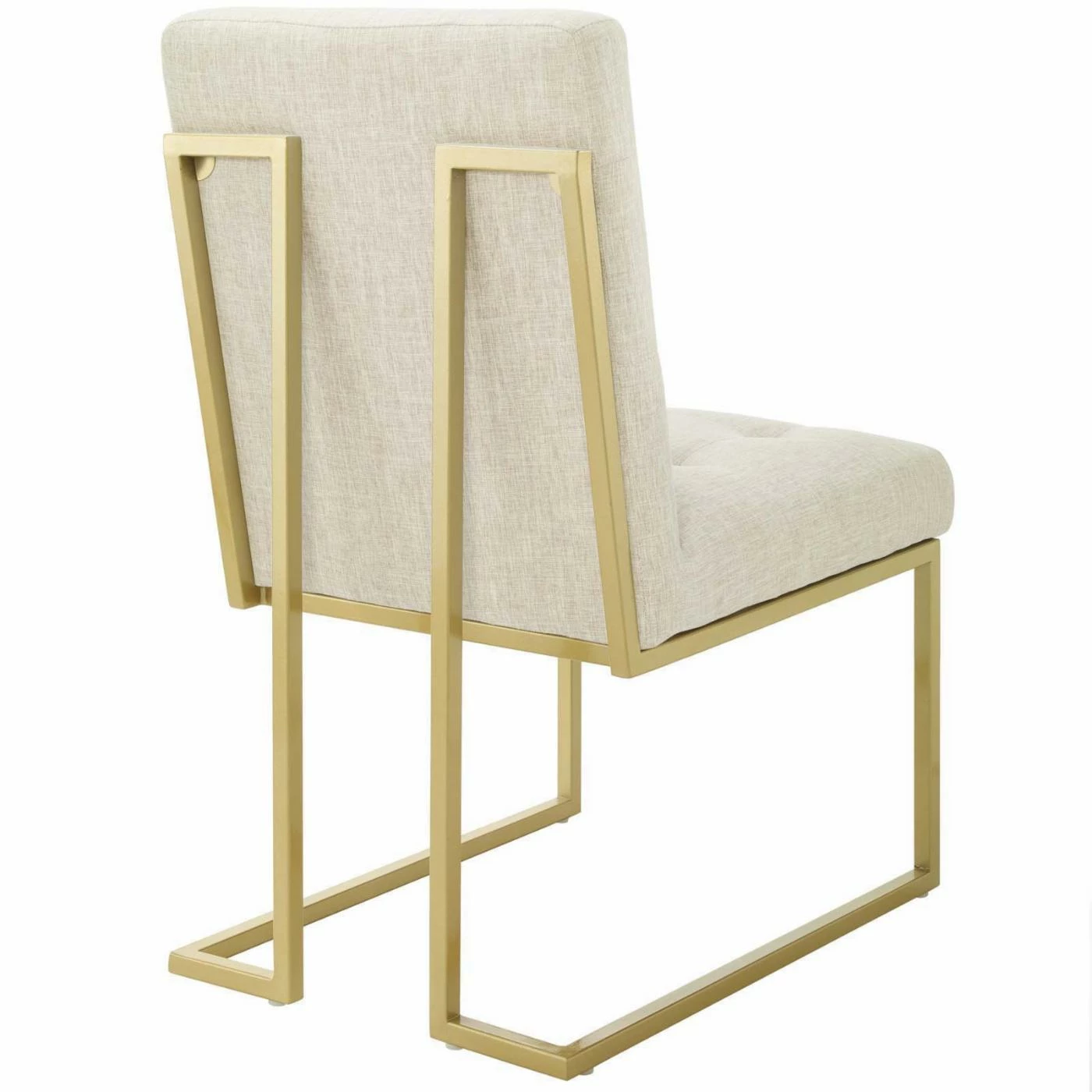 Bring glam, deco style to your dining room with the Modway Privy Gold Dining Accent Chair. This armless dining chair features a unique, geometric metal frame in a luxe gold finish. The plush foam seat is upholstered in soft fabric. Biscuit tufting adds visual interest to the piece.