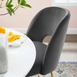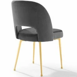Your throwback glam dining room gets an extra dose of color and texture with the Modway Rouse Side Chair. This side chair is also attractive enough to be used on its own in a living room or bedroom as a spare seat. The peekaboo back and velvet upholstery over gold stainless steel legs steel the show, wherever the chair is placed.
