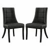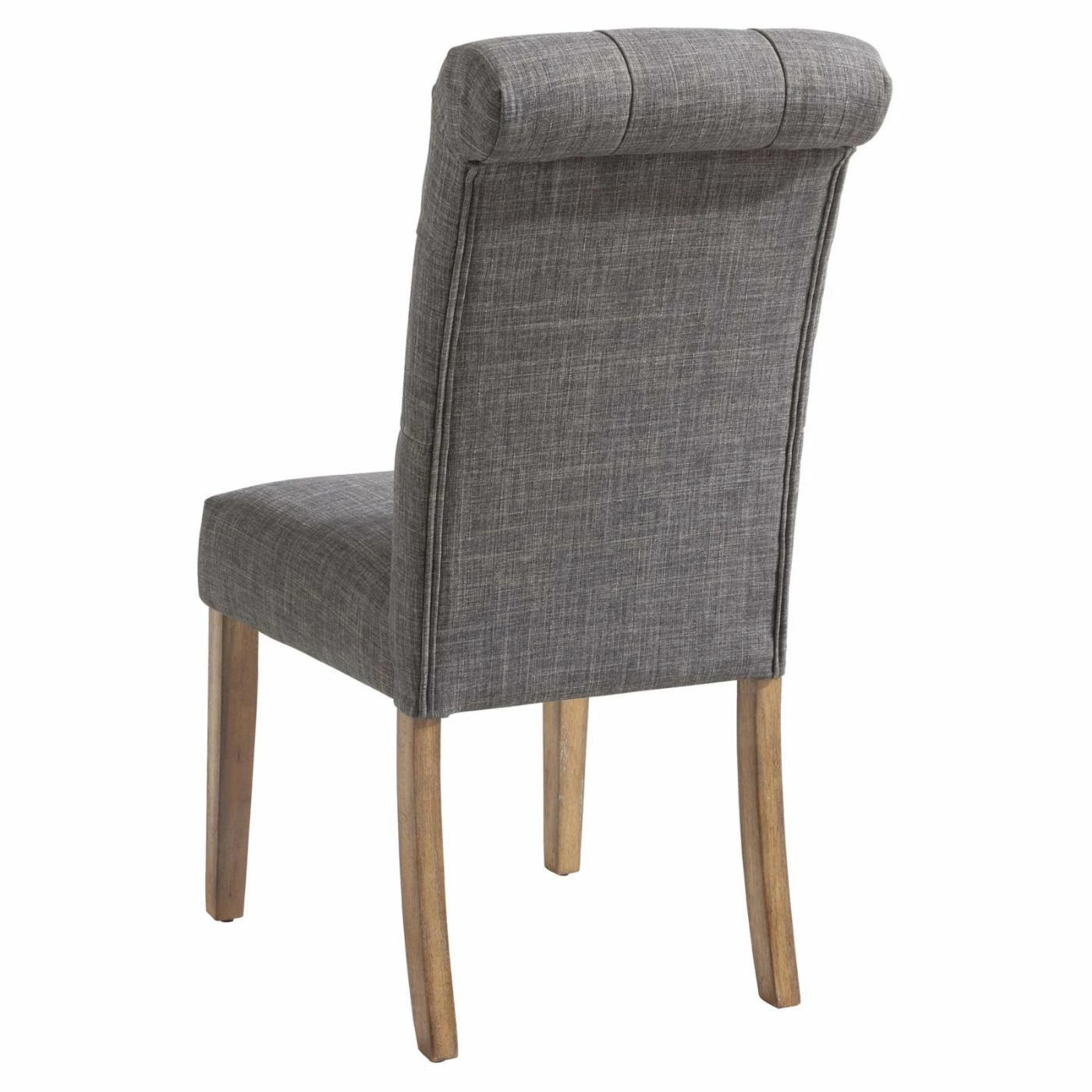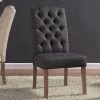 The !nspire Button Tufted Rolled Top Dining Side Chair – Set of 2 features a rolled top for an elegant look. The backs of these side chairs showcase a deeply-tufted design that adds to their sophistication and visual charm. The legs of each side chair are made from solid Asian oak and are finished in a vintage oak hue.