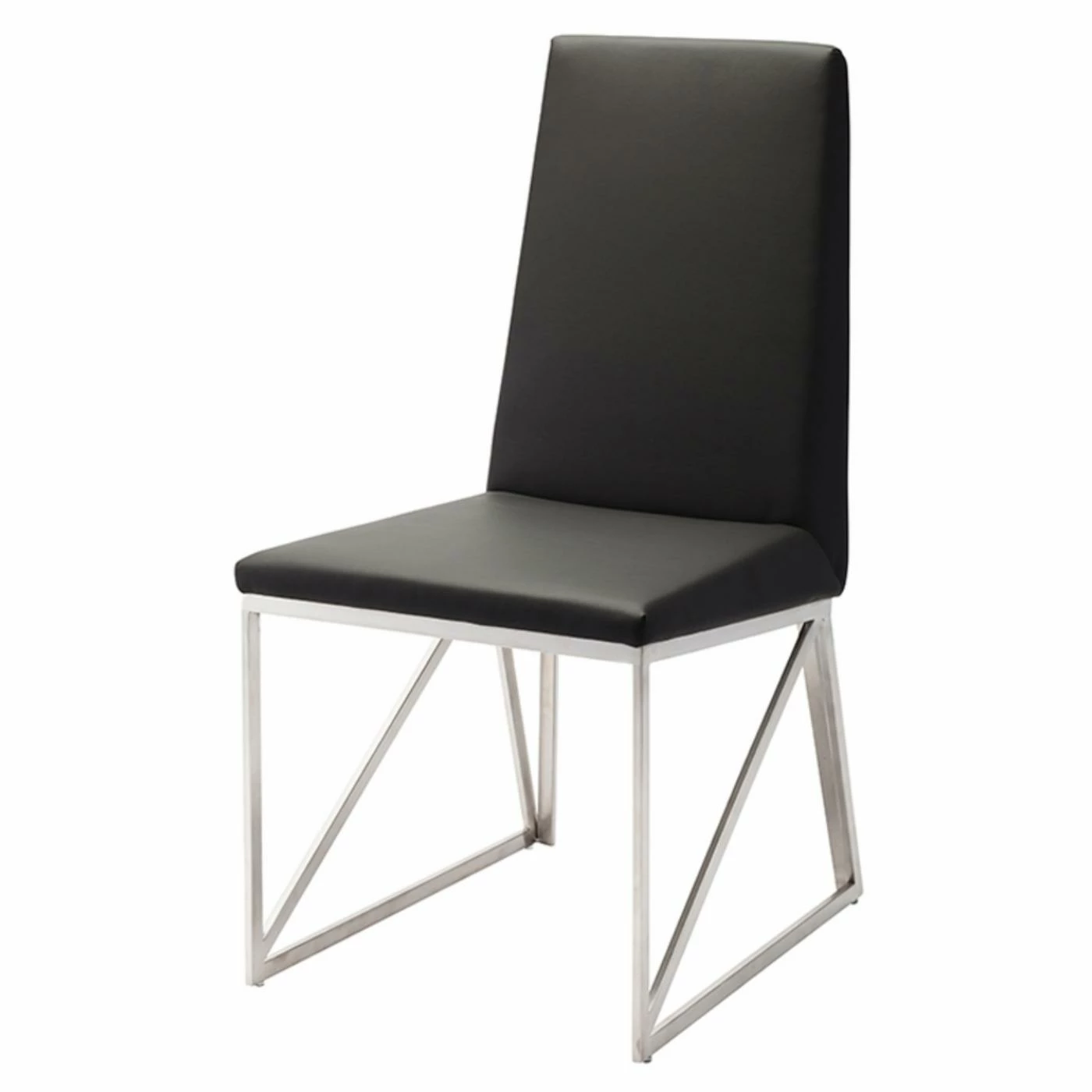 Upgrade seating in your dining room with this Nuevo Caprice Silver Side Chair – Set of 2. Angular side detailing and a polished stainless steel frame finish give these chairs their modern appeal. The set includes two dining side chairs upholstered in your choice of available, easy-care faux leather upholstery.