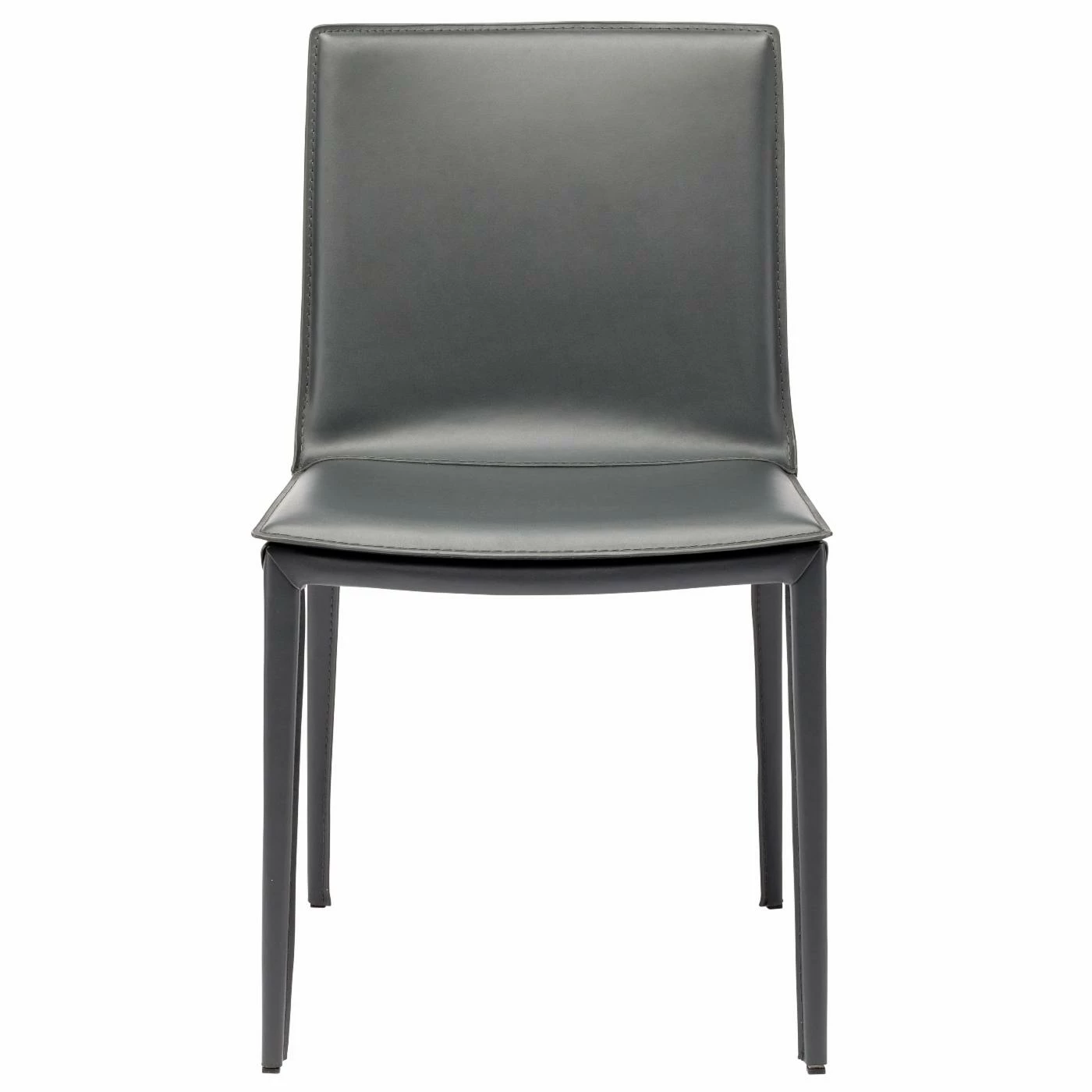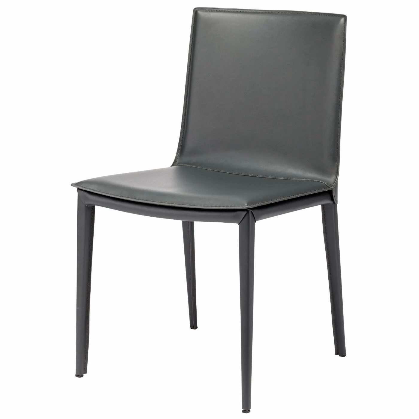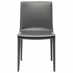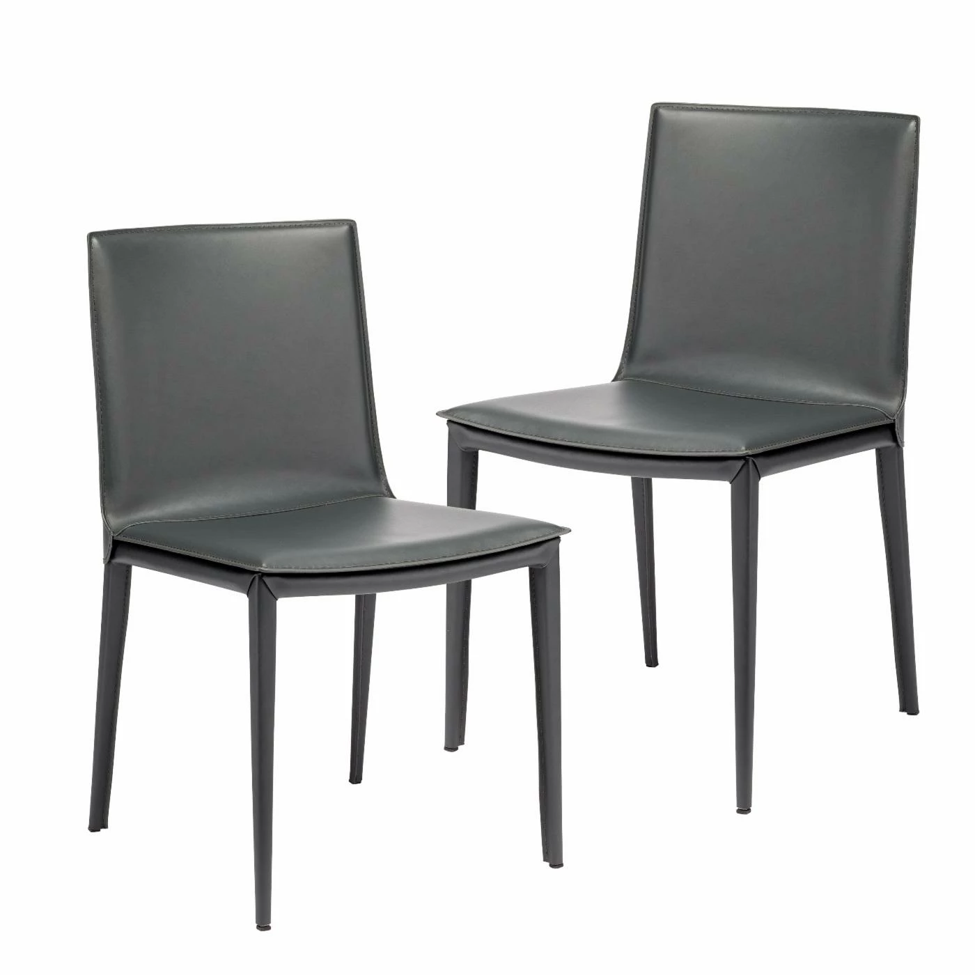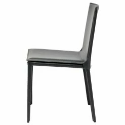 Gracing your dining table with comfortable seating while introducing a modern design aesthetic is easy with this Nuevo Palma Dining Chair – Set of 2. The set includes two dining chairs with sleek, stainless steel frameworks fully wrapped in the luxurious leather color of your choice. Light padding on the seat and back provide comfort without sacrificing style. Tonal stitching and edging add a tailored look to these dining chairs.
