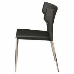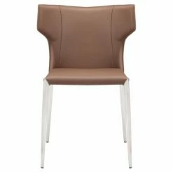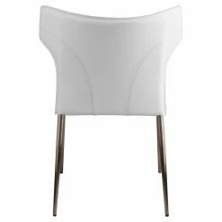 Modern sleekness abounds in the Nuevo Wayne Dining Chair. It rests on slim yet strong silver metal legs. The smooth leather upholstery is offered in multiple color options. The wing back design of this dining chair offers support while you sit.