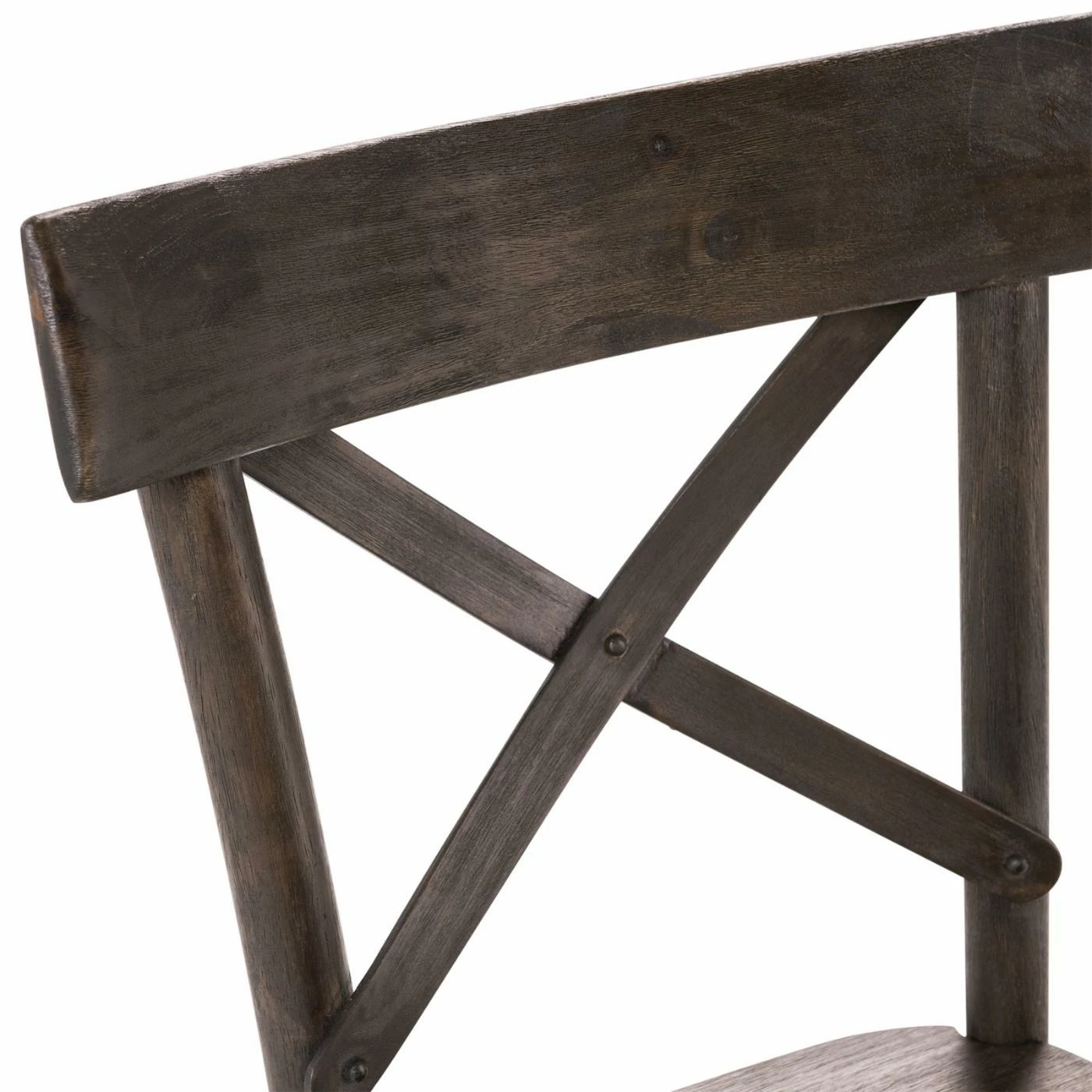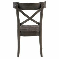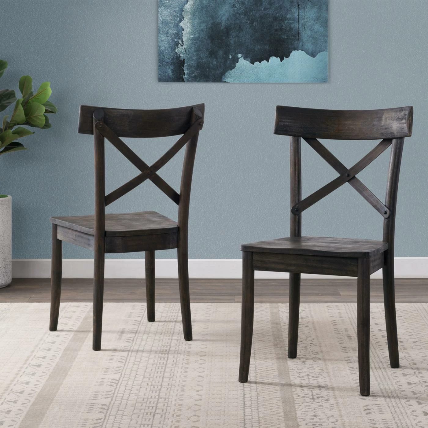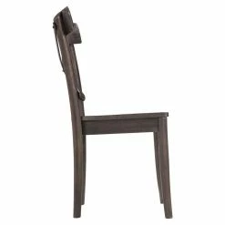 In a dark driftwood finish, the Picket House Furnishings Calhoun Wooden Dining Chair – Set of 2 coordinates best with a farmhouse dining table. These chairs are constructed of acacia wood. Curved, crossed backrests and wide seats make them comfortable.
