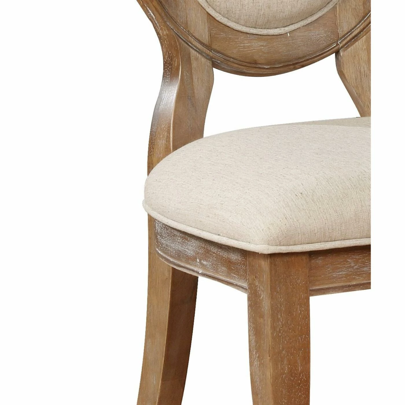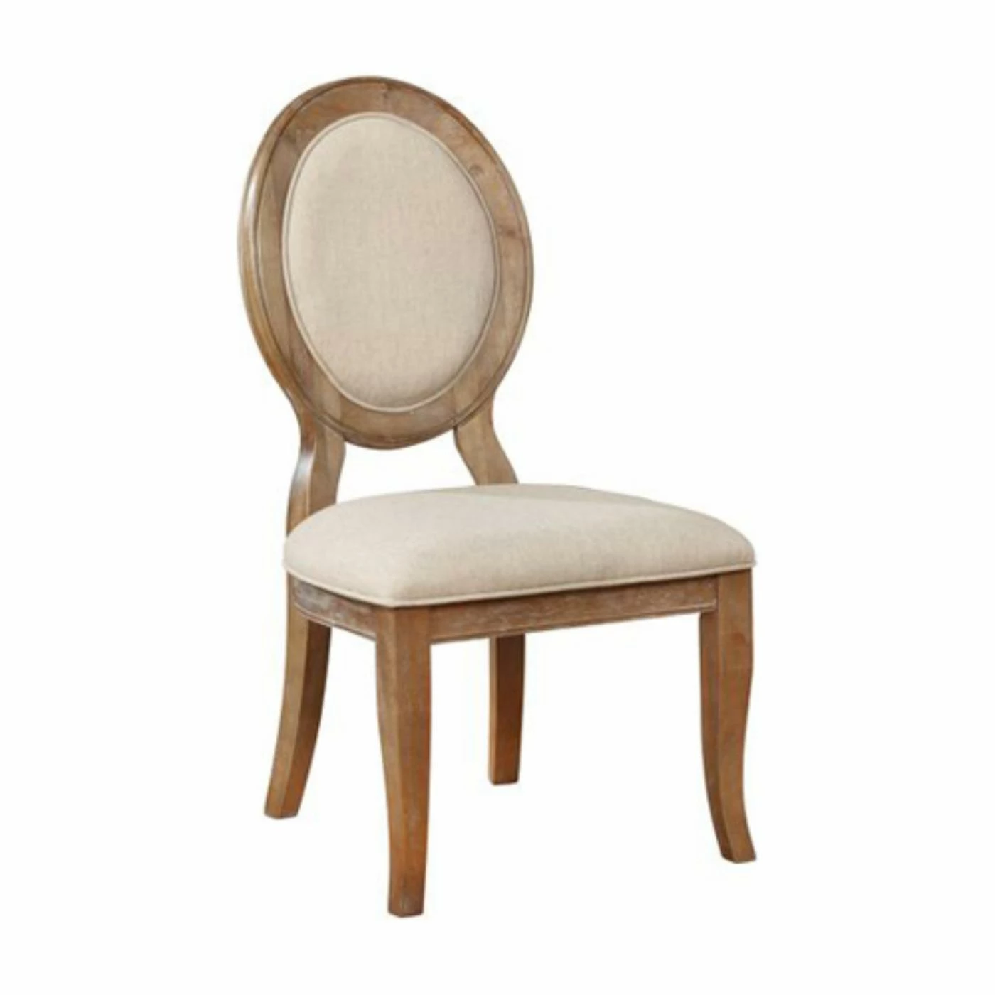 Of course, the Powell Lenoir Side Chair – Set of 2 is the perfect accent to your Powell Lenoir Dining Table, but it’s so attractive and comfy that it would function nicely as a stand-alone seating option as well. Each chair is constructed from rubberwood and oak veneer in a wire-brushed oak finish for added character. It features tapered front legs, flared back legs, and a cushioned seat. However, the defining characteristic of this transitional side chair is most assuredly its contoured oval back with natural linen-look fabric and piping to match the padded seat. Some assembly is required. Set includes two side chairs and table is sold separately.