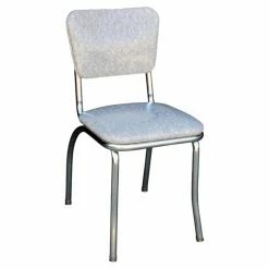 Take a walk down memory lane with the stunning Richardson Seating Cracked Ice Dining Chair with Chrome Base. Durable, easy-to-clean vinyl with a unique cracked ice finish makes these padded chairs utterly unique. They’re built tough with welded steel frames, so they’re suited to heavy use in a busy home or a restaurant. The metal frame has an authentic 50s gleaming chrome finish. Made in the USA.
