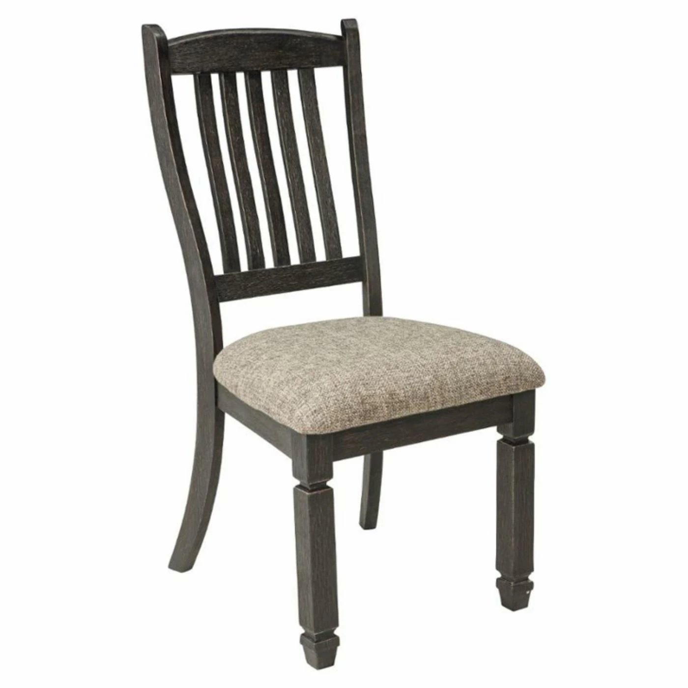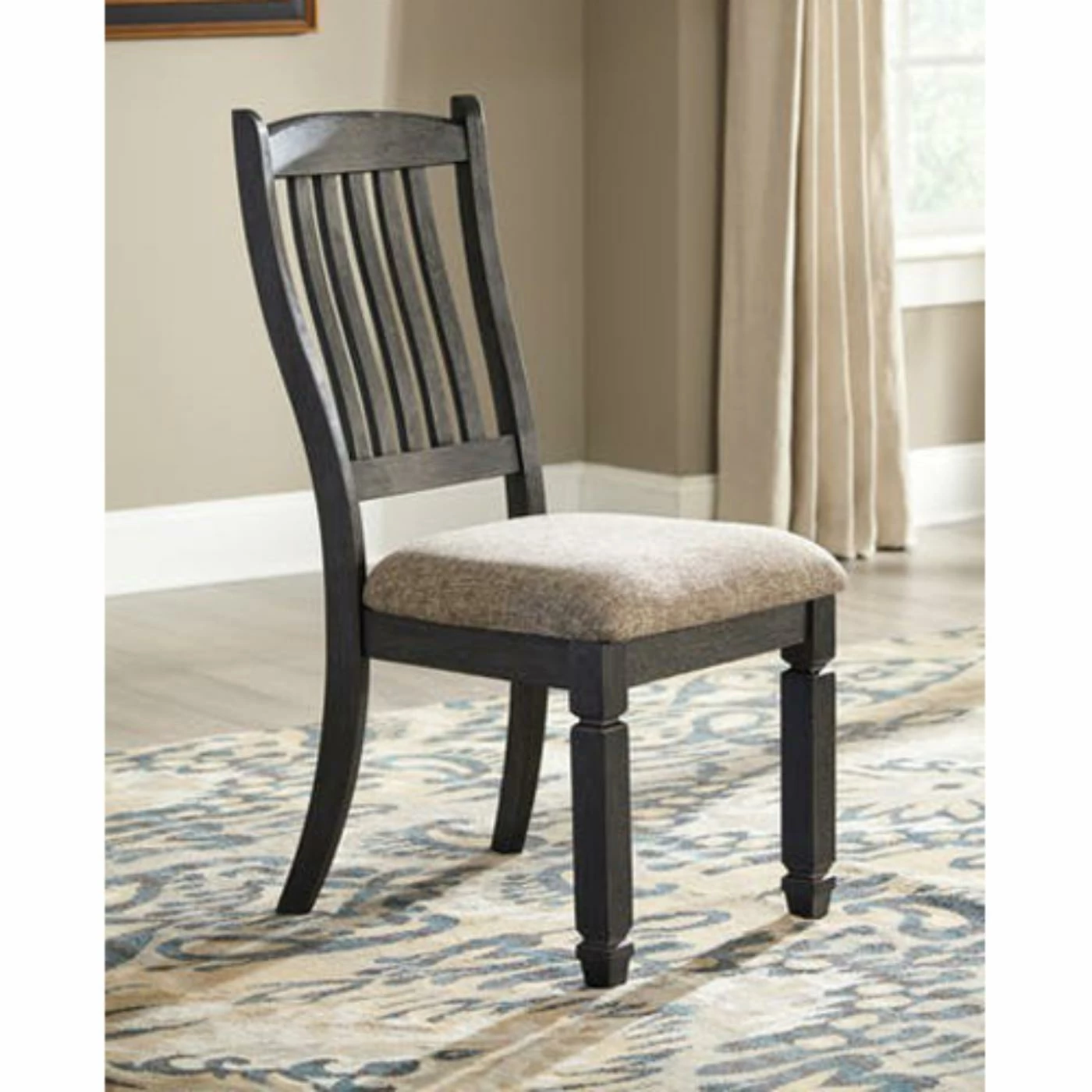 The traditional, timeless appeal of the Signature Design by Ashley Tyler Creek Slat Back Dining Side Chair – Set of 2 is perfect for your dining space. The wood frame is finished in a chic black. The padded seat features a soft, beige, polyester fabric upholstery. A classic slat back design completes the look. Assembly required. Set of two.