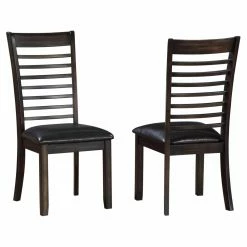 The Steve Silver Co. Ally Ladder Back Dining Side Chair – Set of 2 adds rustic chic to home dΓ©cor. The laddered back is an eye-catching detail that pairs well with the rich dark hue. Soft faux leather provides a comfortable seat as you dine. Pair with the Ally dining table for a matching look.