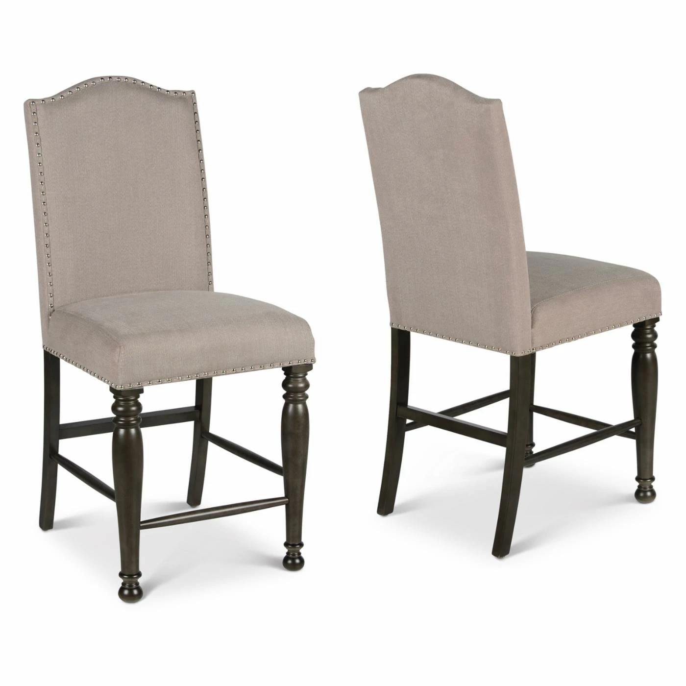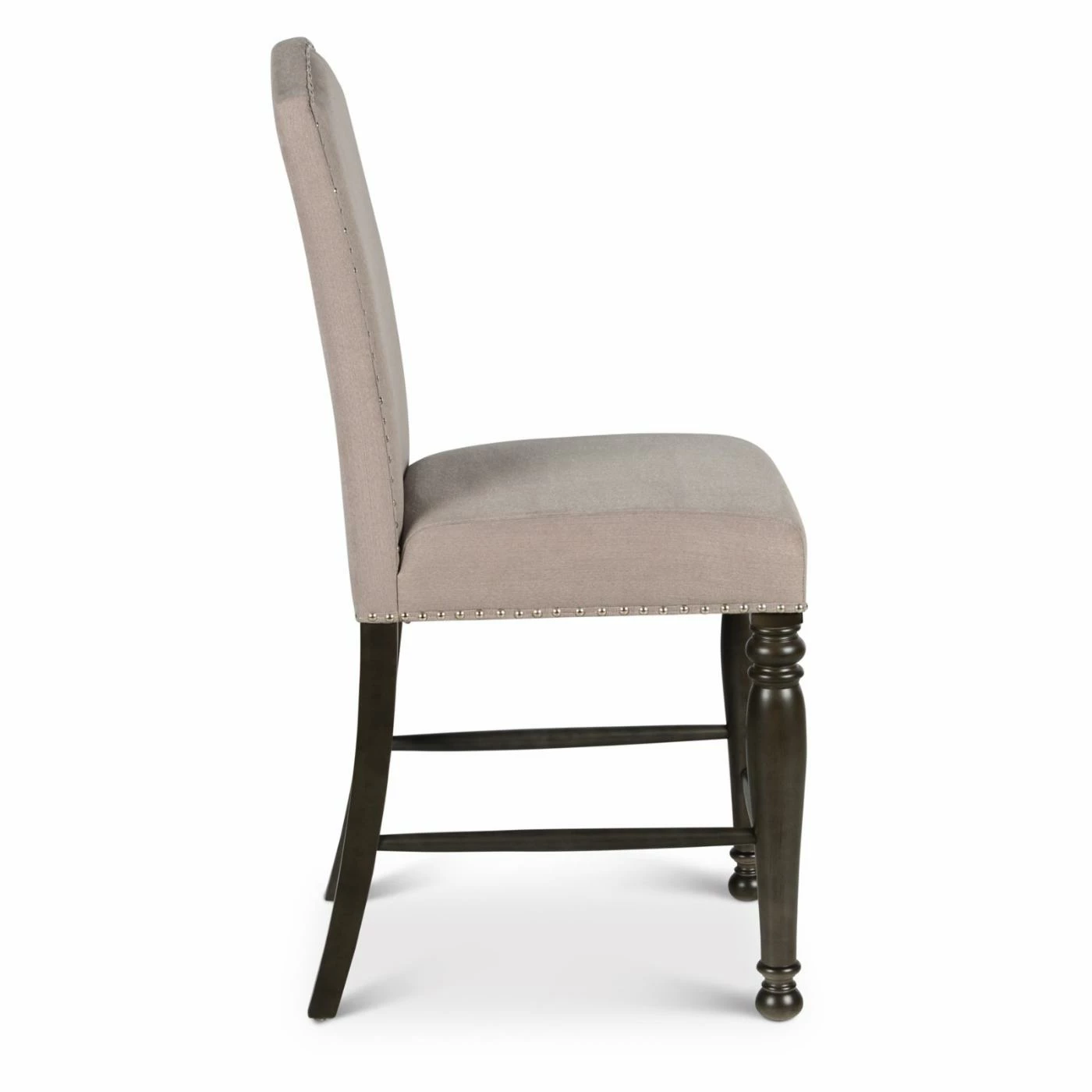 Dine in style with the Steve Silver Co. Caswell Counter Dining Side Chair – Set of 2. Each counter-height dining chair is constructed of solid rubberwood in a chic gray finish. The seat is upholstered in gray polyester. Nailhead trim lines the chair and adds visual interest to the piece. Each chair has turned front legs and stretchers, giving you a place to rest your feet. These chairs are perfect for counter tables, kitchen bars, or islands. Some assembly required. Pair these chairs with other pieces from the Caswell Collection on Hayneedle.com to create a cohesive look for your dining room.