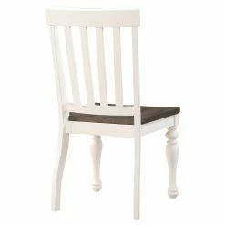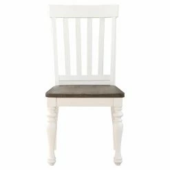 Create an updated farmhouse look for your kitchen or dining room with the Steve Silver Co. Joanna Slat Back Dining Side Chair – Set of 2. These armless dining chairs feature classic slat back designs and are complemented by a chic two-tone charcoal and ivory finish. They are constructed from rubberwood, mango wood, and acacia veneer. Their turned legs add a traditional influence to their look, allowing these chairs to pair well with both vintage-inspired and modern dΓ©cor styles.