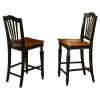 The fancy slat counter stool is crafted of eco-friendly Malaysian oak. It has a two-toned finish of distressed wheat on the frame and rich pecan on the seat for casual elegance. Its slim slats, straight front legs, and curved back legs call to mind craftsman design. The built-in footrests enhance your comfort.
