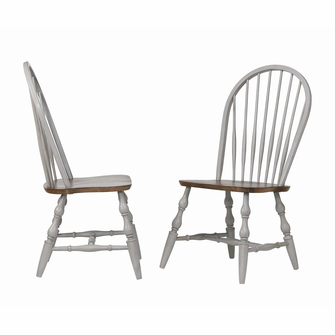 The spindle back design of the Sunset Trading Country Grove Windsor Dining Side Chair – Set of 2 gives your home an air of a coastal cottage. It is made of solid Malaysian oak and has a contoured seat for added comfort. The two toned weathered gray and natural finish add a bit of contemporary flair to the Windsor chair.