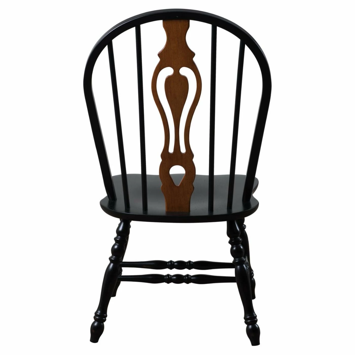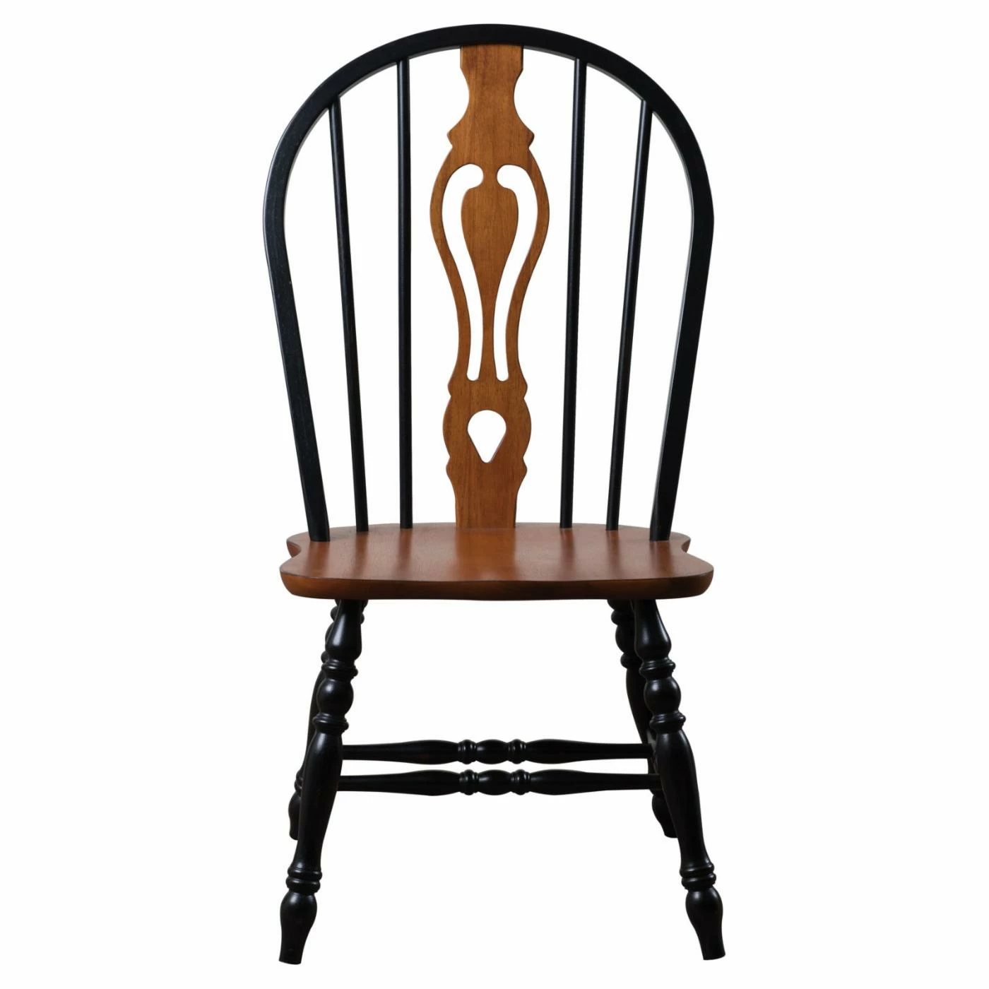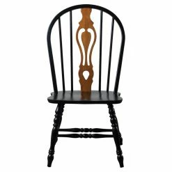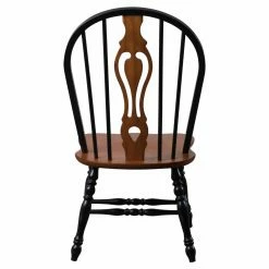 With farmhouse charm exemplified by a delicate keyhole back and deluxe turned legs, the Sunset Trading Keyhole Dining Chair is the perfect way to infuse traditional style into your dining room. This chair is available in three beautiful colors to coordinate with almost any wood table. Choose from a black frame with cherry accents, a uniform light oak, or a rich nutmeg frame with light oak accents. Made from sturdy hardwood with a comfortable scooped seat, these steel reinforced chairs will look great in your home for years to come.