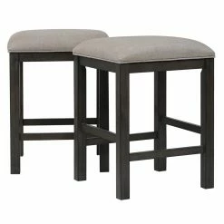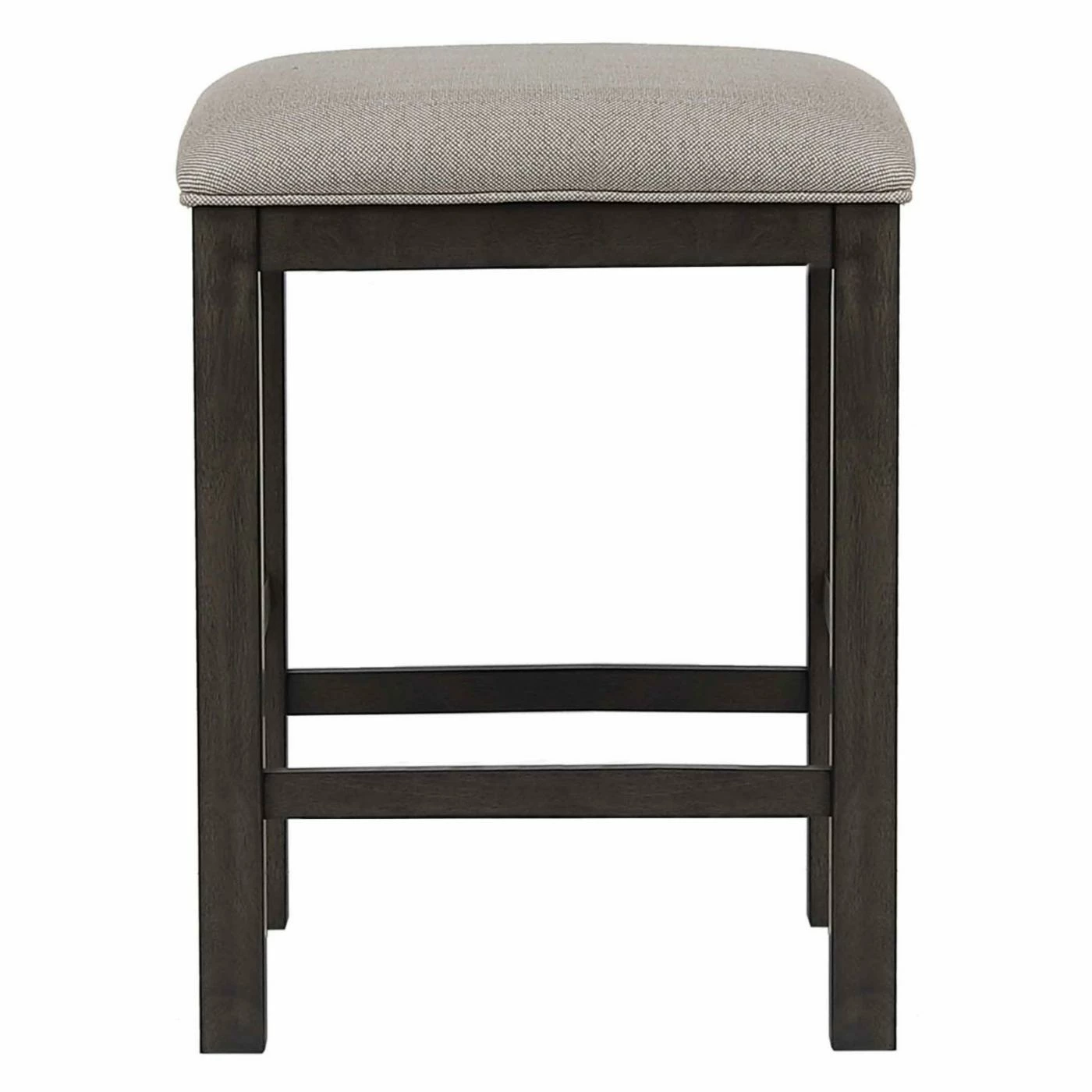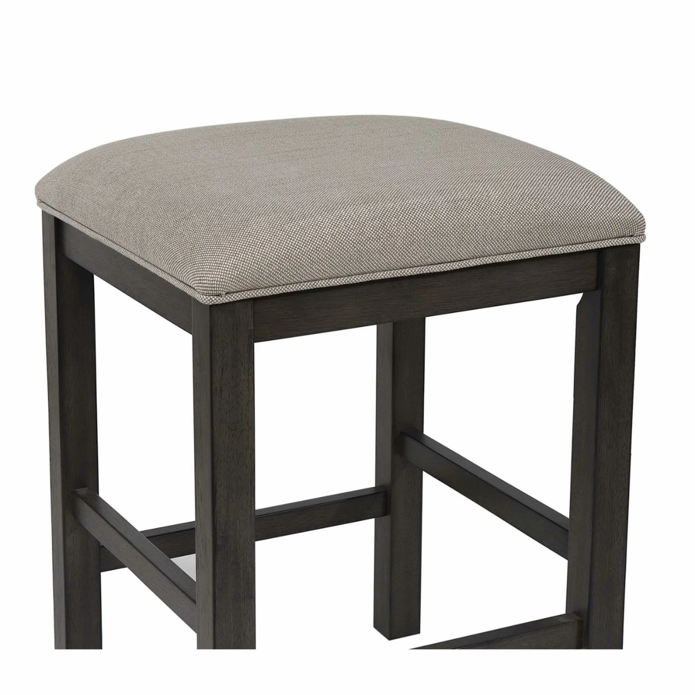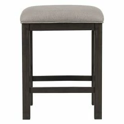 Comfortable and casual, the Sunset Trading Shades of Gray Upholstered Counter Stool is just what you need to turn your kitchen counter into a breakfast bar. This stool is supported by a rubberwood frame in a dark oak finish. The cushioned seat is covered with grey polyester-linen upholstery and accented with cord welt trim. To protect your floors, each leg is equipped with a plastic glide.