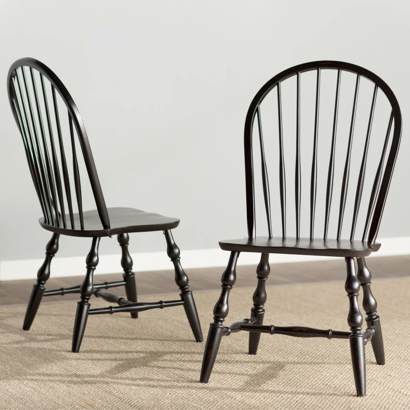 Refined styling lends an elegant touch to eating and entertaining when you bring the Sunset Trading Sunset Selections Windsor Spindleback Dining Chair in Antique Black – Set of 2 to your dinner table. These timelessly sophisticated chairs are finished in an antiqued black tone to enhance their classic design.