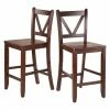 These Weston Home Junipero Counter Height Chairs – Cherry – Set of 2 are perfect for counter, bar, or dining table setups. Crafted from quality rubberwood, they boast a rich cherry finish that highlights the gorgeous wood veneer. Cushioned faux leather seats ensure comfort, while the sleek design channels early 20th century style. They also work beautifully with the Junipero Collection dining tables.