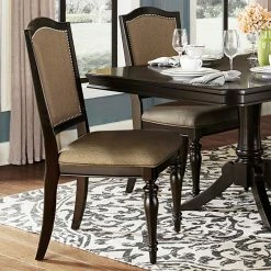 Sitting down to dinner never looked better – thank you, Weston Home Marston Nailhead Side Dining Chair – Set of 2. Packaged as a set of two, these side dining chairs feature solid rubberwood frames in a rich espresso finish. Plush linen upholstery is available in your choice of color, while nailhead trim and turned front legs add to the elegant appeal.