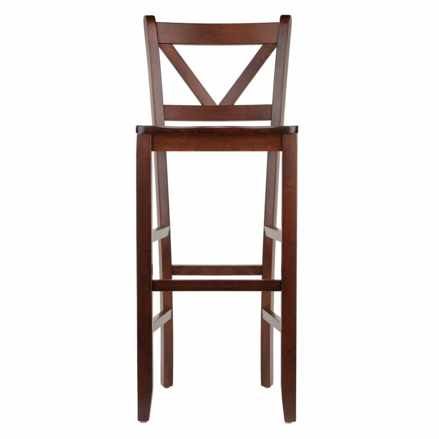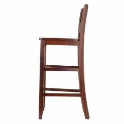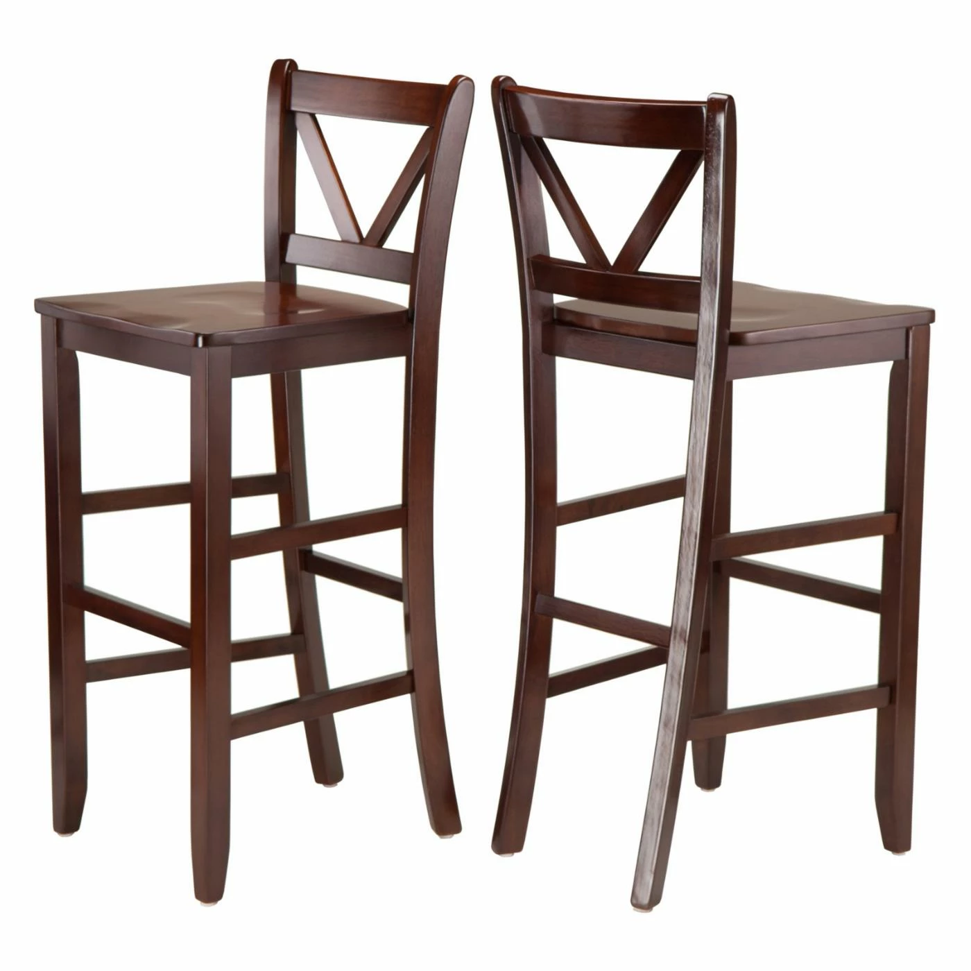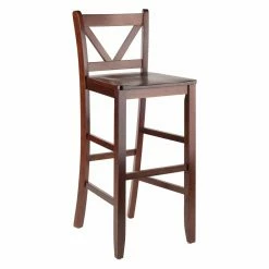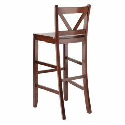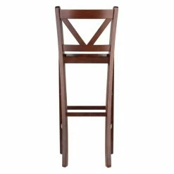 Improve the look and leisure of your kitchen or basement bar with the Winsome Victor V-Back 29 in. Bar Height Dining Stools – Set of 2. Each chair is crafted from solid wood and durable composite with tapered front legs and tapered back legs connected by stabilizing stretchers that double as convenient footrests. The wood seat is carved for your comfort and the decorative back showcases a striking V-shape that’s not only supportive, but provides greater visual interest to your arrangement.