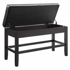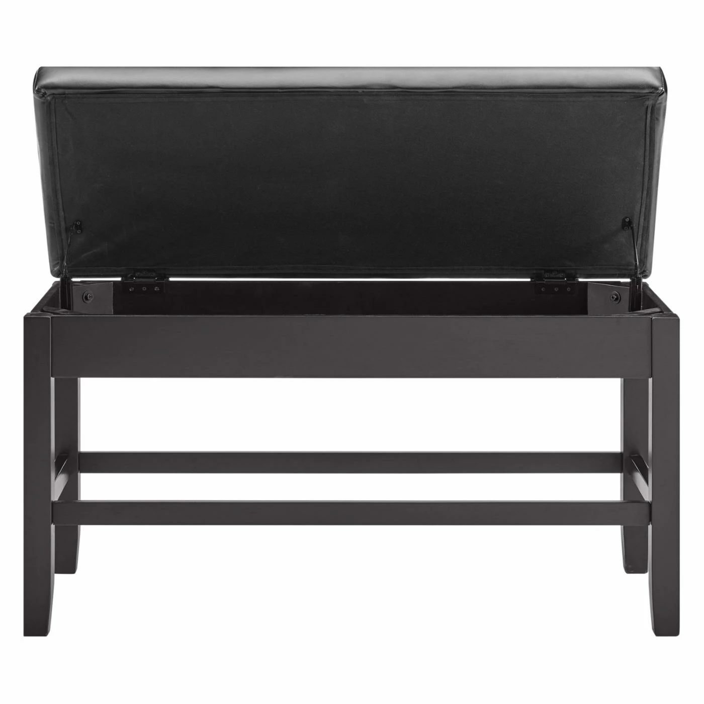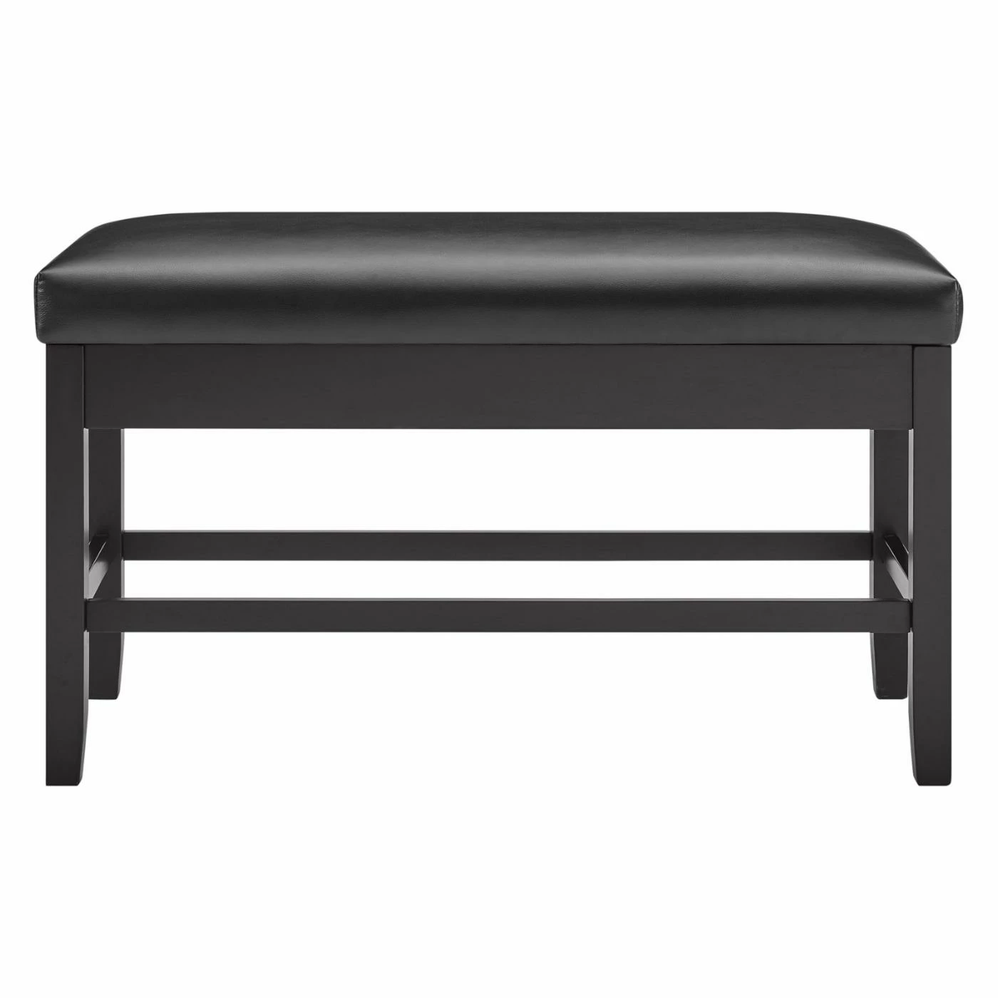 The Steve Silver Co. Carrara Counter Dining Bench with Storage combines function and style. Constructed of solid rubberwood in a black finish, this bench has a padded foam seat upholstered in black faux leather. The top lifts off to reveal storage underneath for your extra linens, candles, or other knickknacks. With its monochromatic color scheme and clean lines, this backless bench has a sleek design. Use it with your dining set, or use it as additional seating in other rooms. Pair this piece with other items from the Carrara Collection on Hayneedle.com to create a cohesive look for your home.