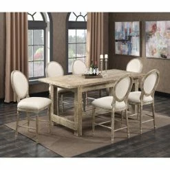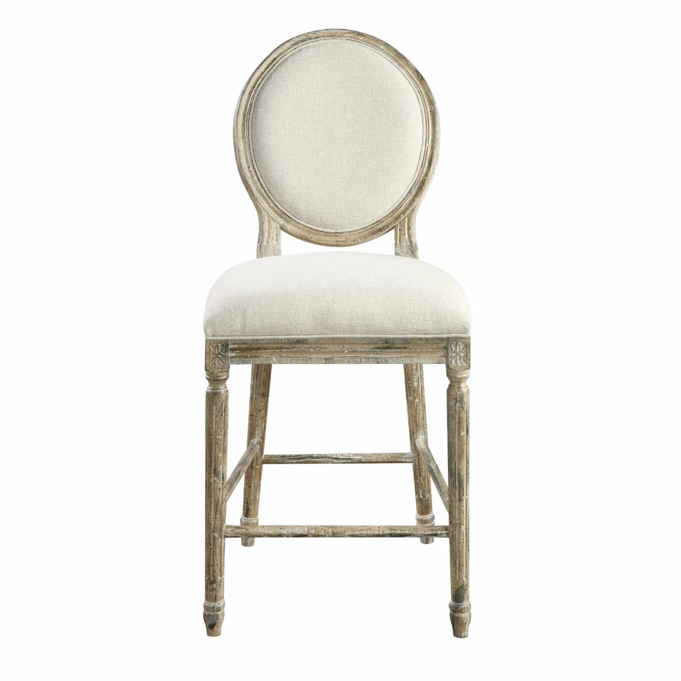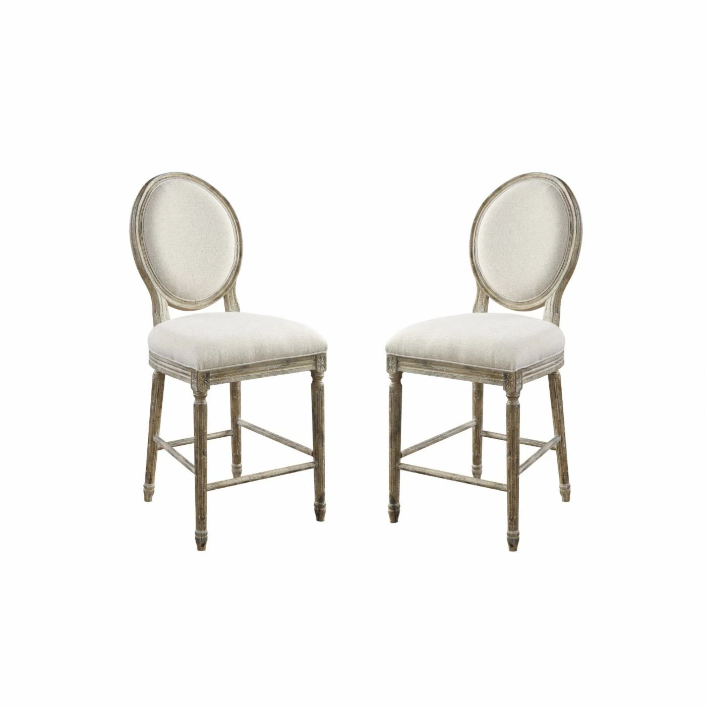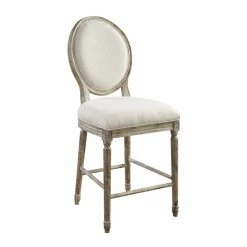 The Wallace & Bay Haynes 24 in. Upholstered Counter Height Dining Chair – Set of 2 exudes rustic charm. Elegant, hand-distressed woods with soft, linen-like upholstery brings effortless sophistication.